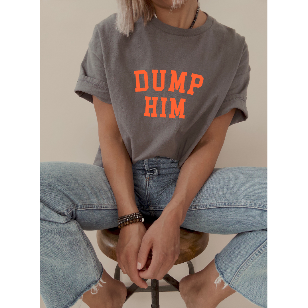 100% RING SPUN COTTON T SHIRT WITH ORANGE SCREEN PRINT "DUMP HIM"