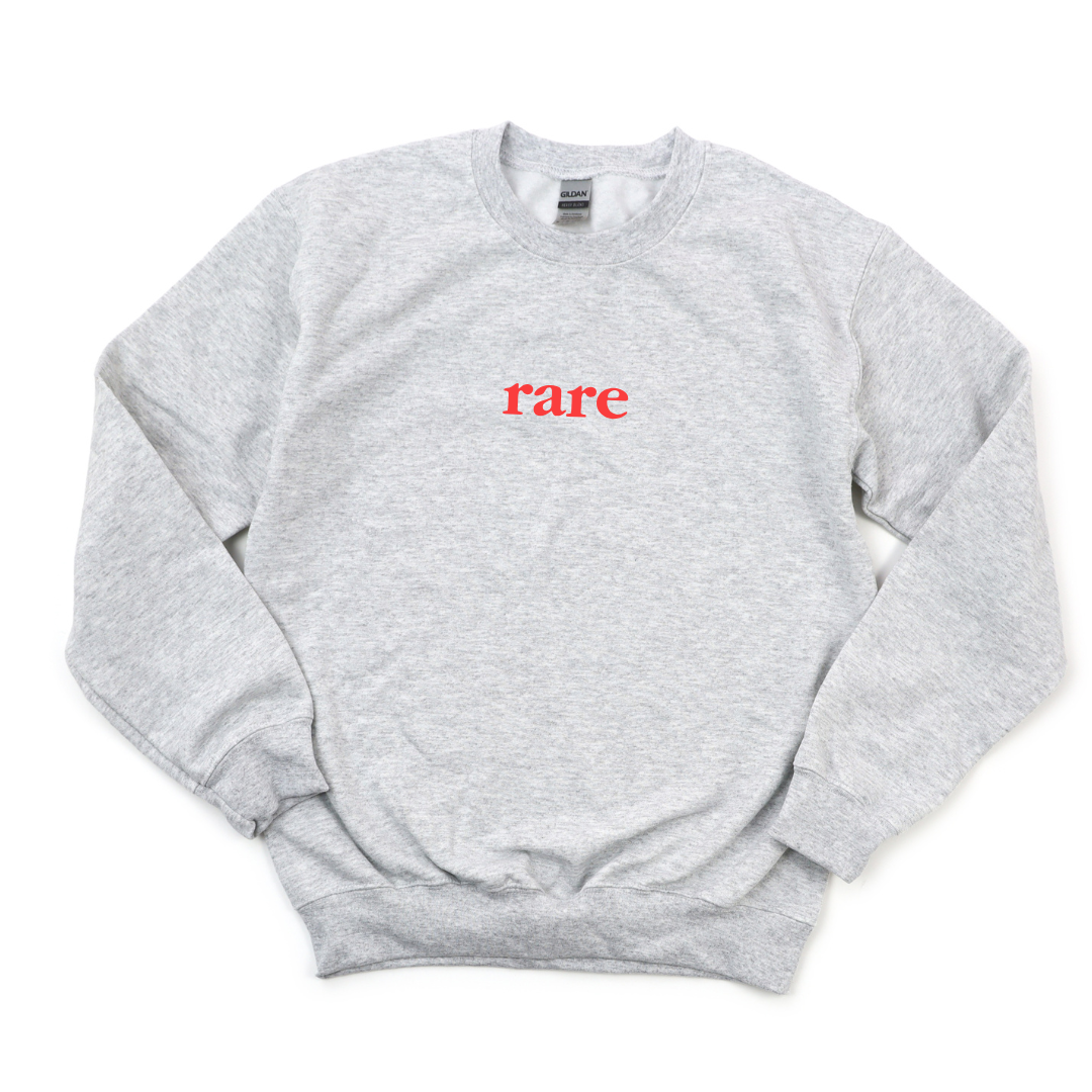 RING SPUN COTTON BLEND PULL OVER CREWNECK WITH RED SCREEN PRINTED RARE LOGO. RIBBED NECK AND RIBBED SLEEVE CUFFS. UNISEX / OVERSIZE FIT.